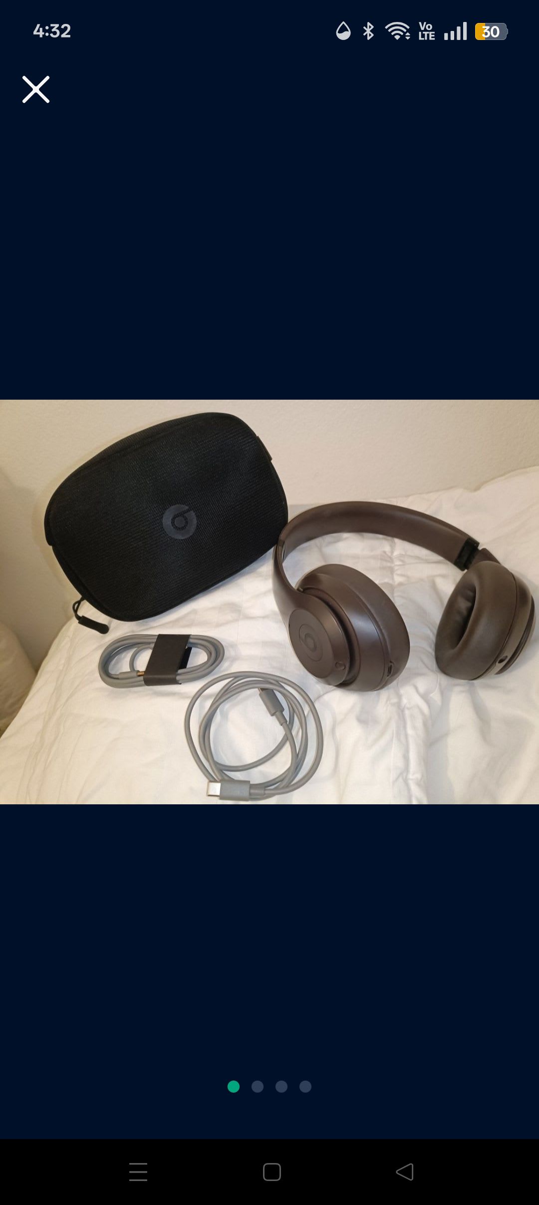 Vendo audífonos Beats Studio Pro en color marrón. Incluyen estuche, cable de carga y adaptador. Están en buen estado, con algunas marcas de uso, pero funcionan perfectamente. Ideal para quienes buscan calidad de sonido y comodidad.