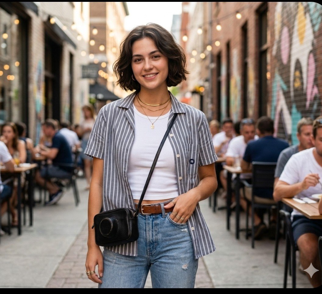 BLUSA 👚 RAYADA MARCA 🔥 💖 ¡Estilo casual y fresco! Diseño a rayas, tela ligera y súper cómoda. Perfecta para usar abierta o cerrada, se ve genial con todo. 📏 MEDIDAS:aprox Ancho axila: 52 cm Largo: 66 cm Talla: XS ✨ ¡Nueva con etiquetas! Ideal para diario