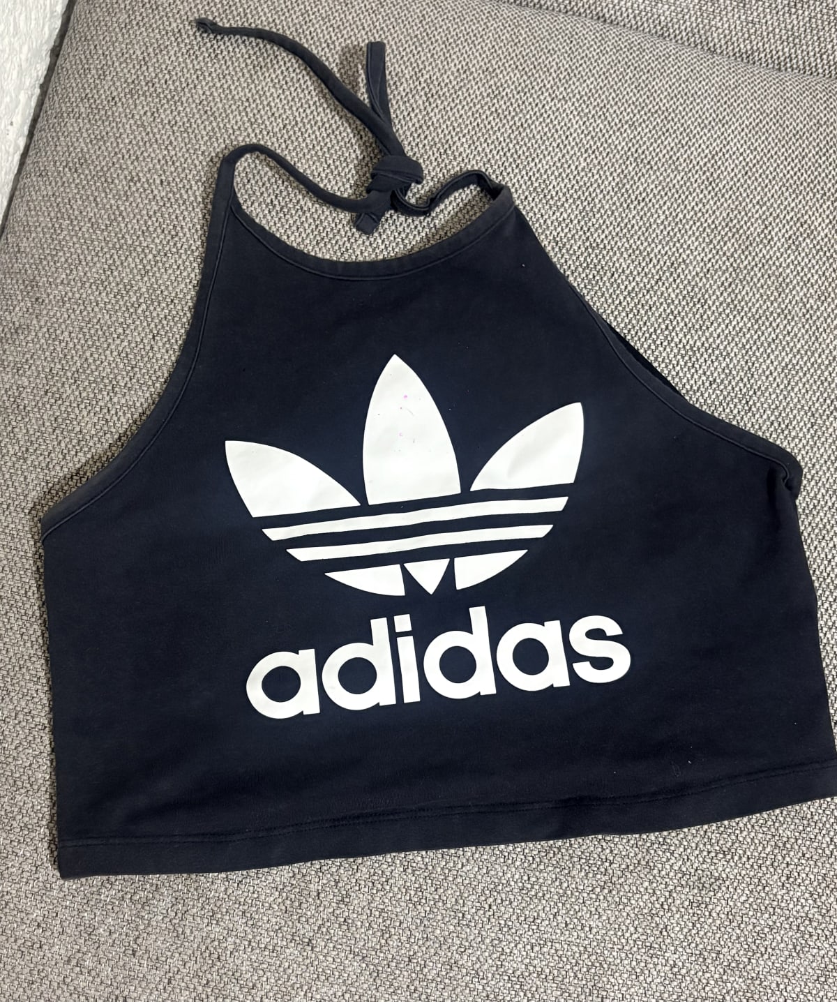 Blusa Crop Top Adidas original en color negro, talla S en excelente estado, y sin detalles color 8/10