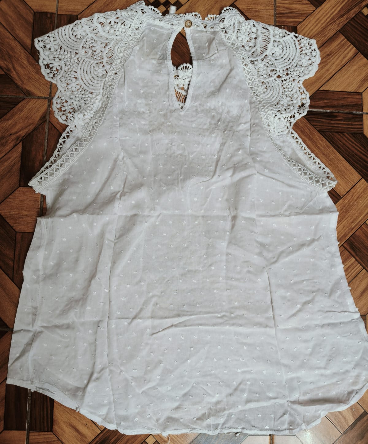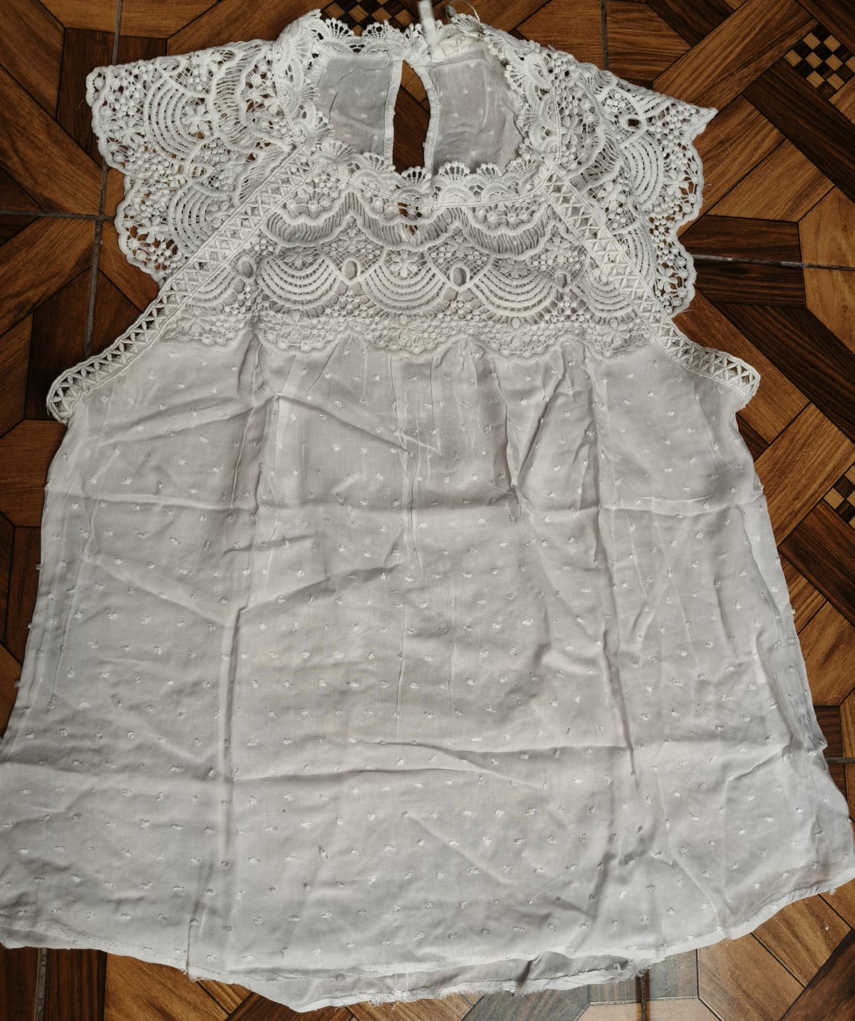 Blusa de Encaje Blanca con Detalles Bordados