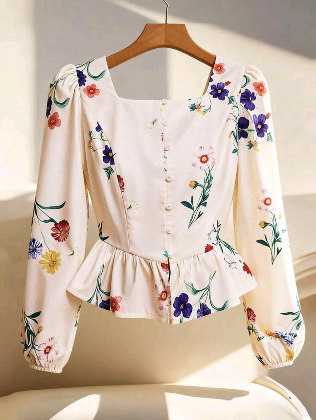 Blusa floral de manga larga Talla M (medidas en la última foto) Color Estampado floral Estado Usado como nuevo (1uso)