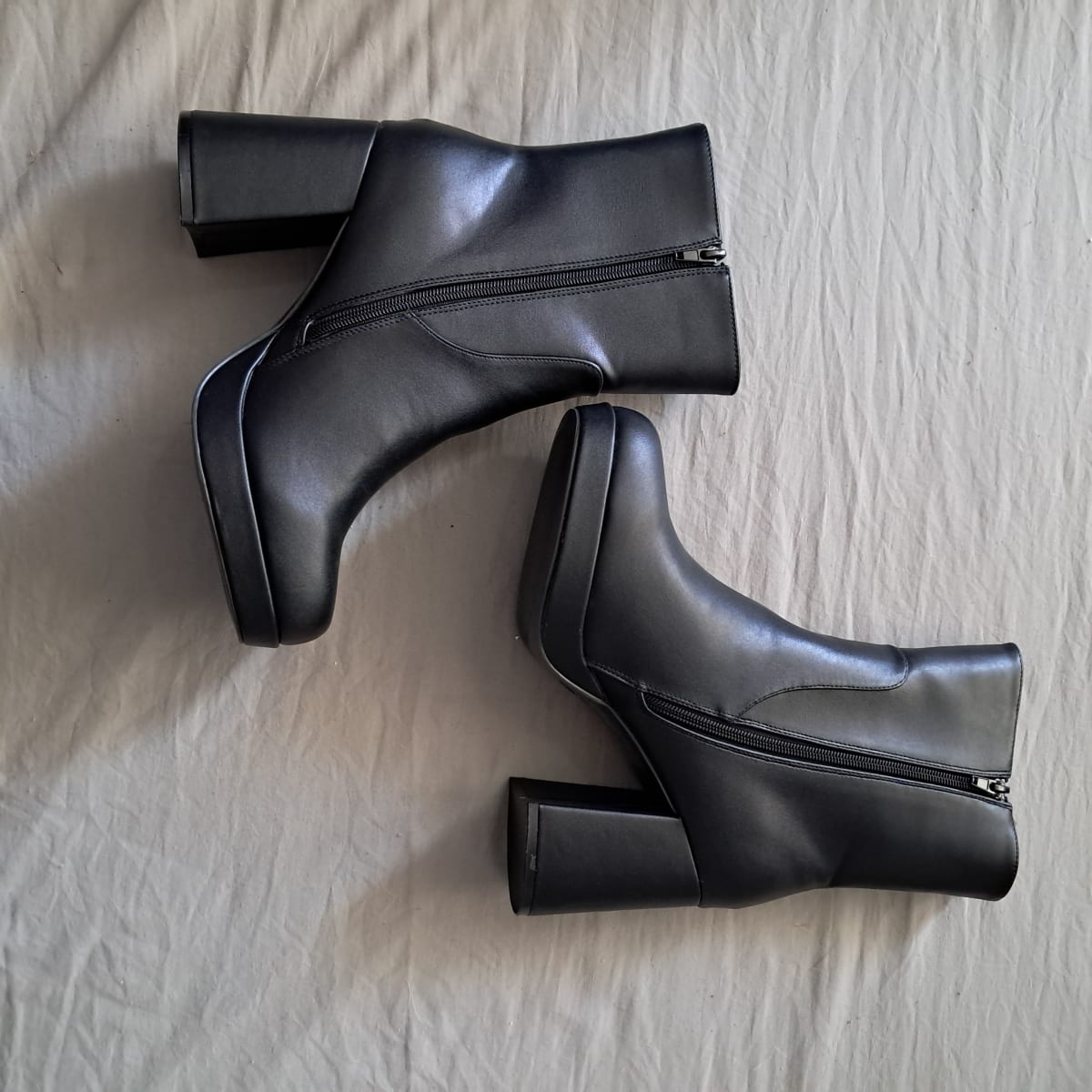 Vendo botines de tacón altos en color negro, talla 6. Están en buen estado,son nuevas. Tienen un diseño moderno y cierre lateral. Son cómodos y perfectos para cualquier ocasión.