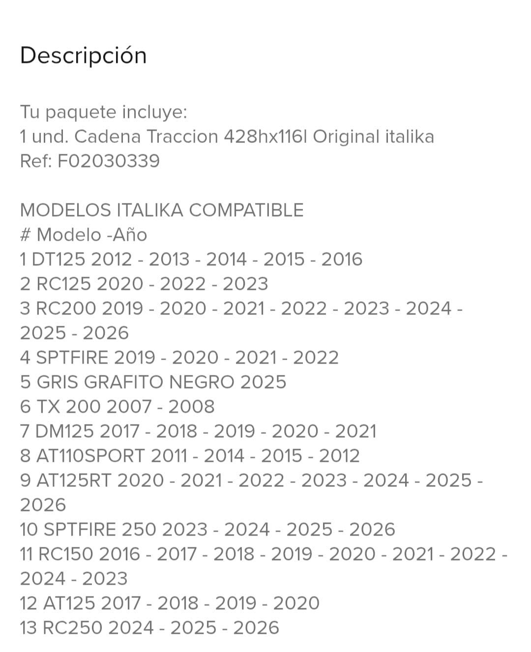 Vendo cadena de moto original, en excelente estado, totalmente nueva, Viene en su empaque original y sellado, ideal para reemplazo o mejora de tu motocicleta. Asegúrate de que sea compatible con tu modelo.