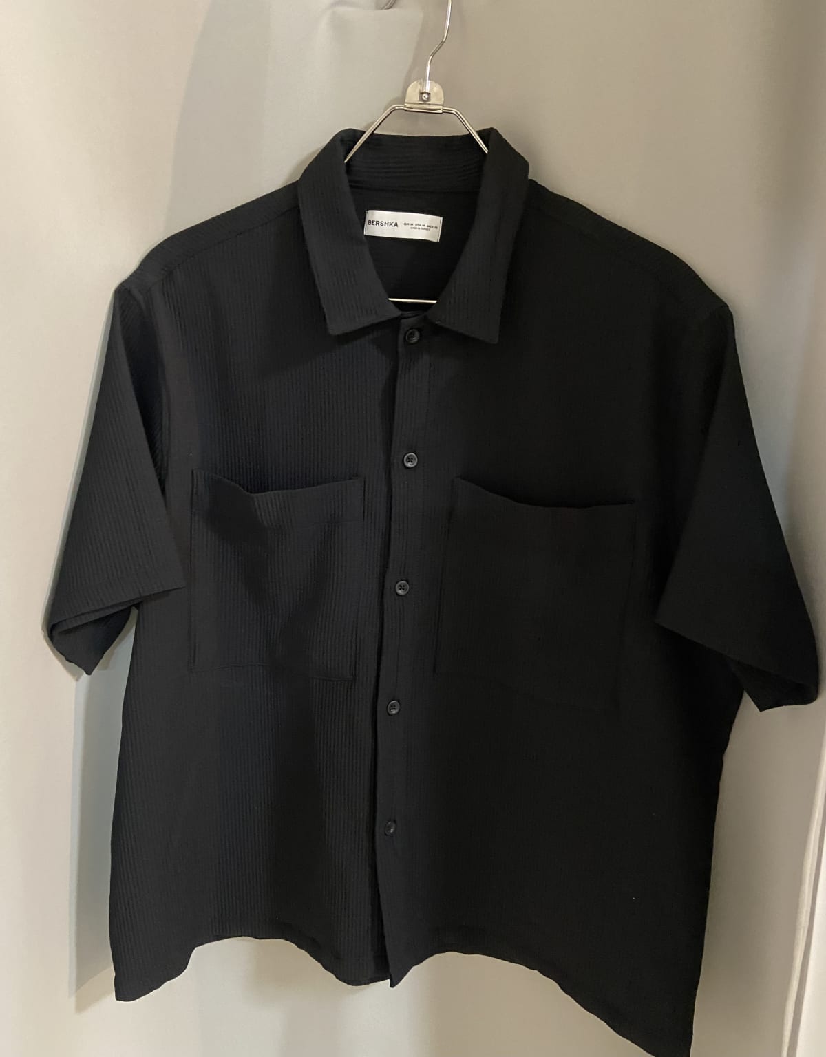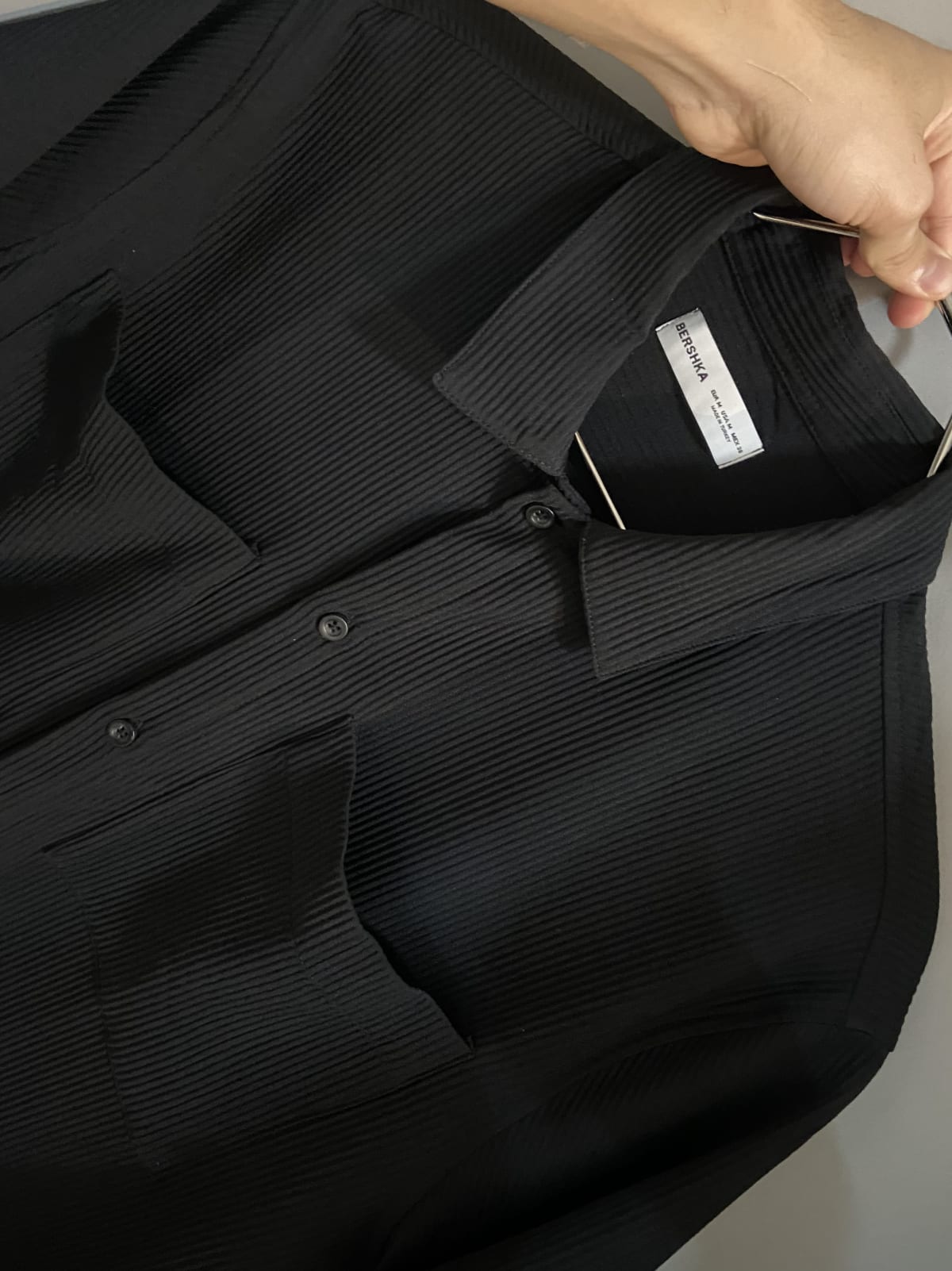 Camisa marca Bershka en color negro con un diseño de rayas.