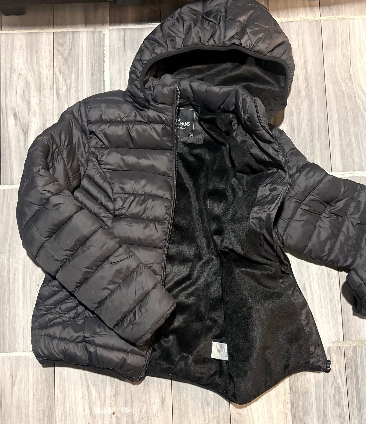 Chamarra de la marca OPP'S Jeans, en color negro y talla M. Está en condiciones nuevas, sin uso visible. Cuenta con un forro suave y capucha, ideal para climas fríos. Perfecta para combinar con cualquier outfit casual.