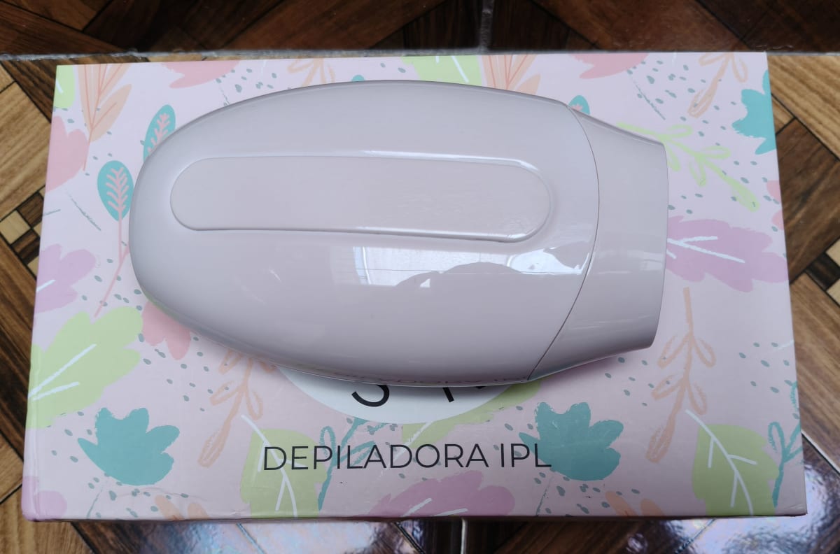 Depiladora IPL en color rosa, en excelente estado. Incluye su caja original y adaptador de corriente. Ideal para usar en diversas zonas del cuerpo como axilas, piernas y rostro. Sin defectos visibles, lista para usar.
