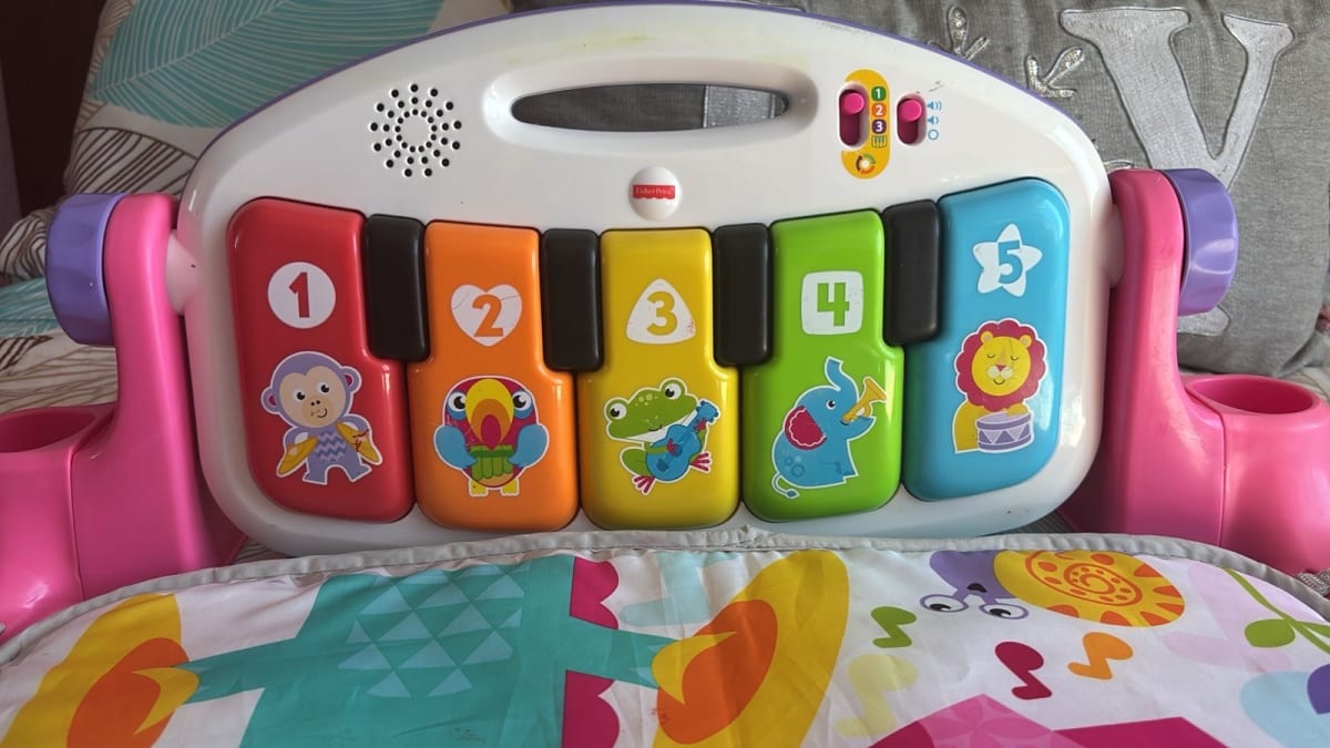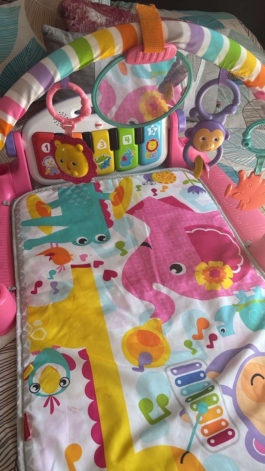 Alfombra musical en buen estado, ideal para el desarrollo de los más pequeños. Incluye un piano con botones coloridos y juguetes colgantes. Perfecto para estimular el juego y la música.