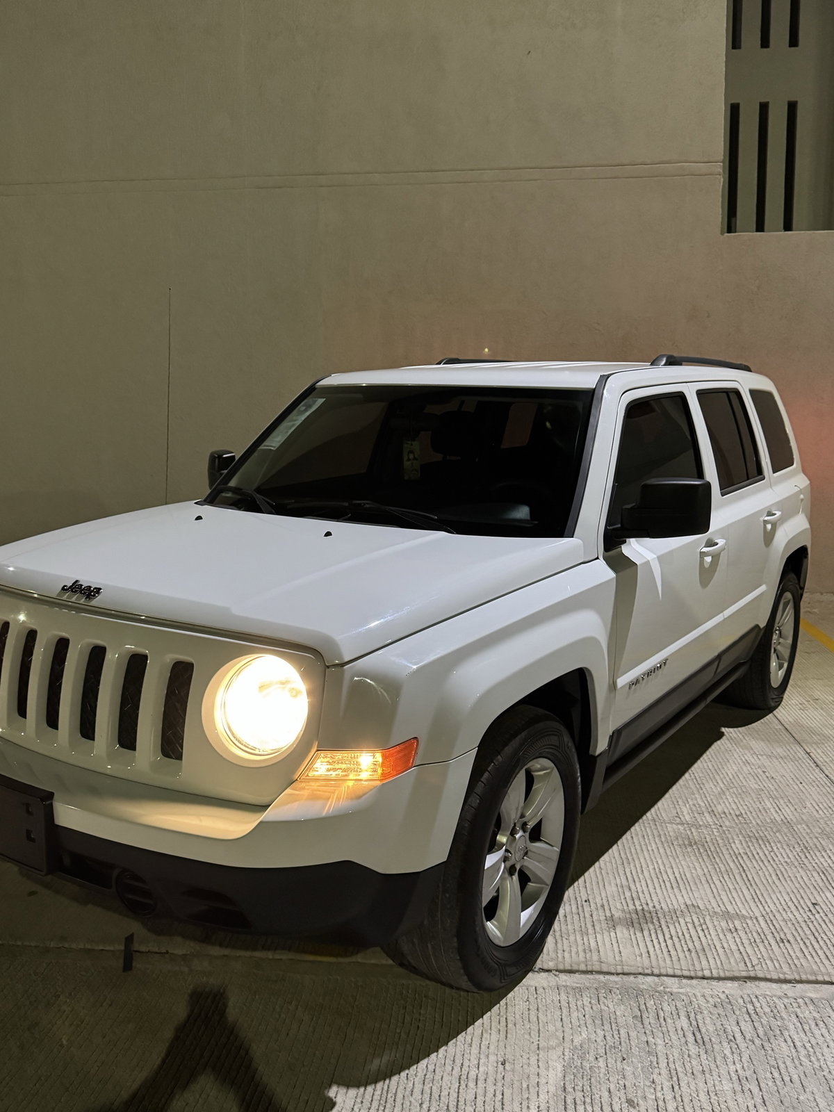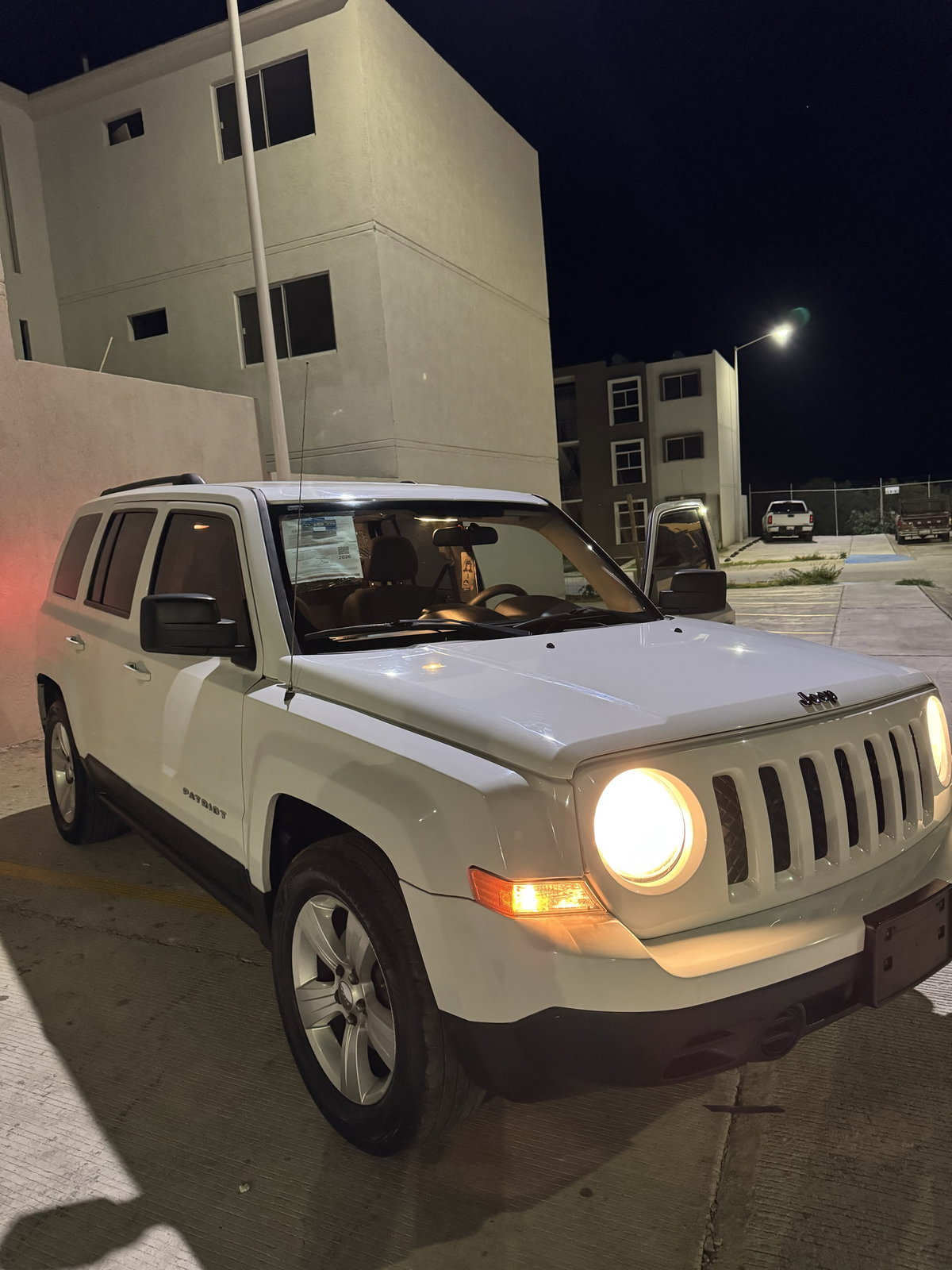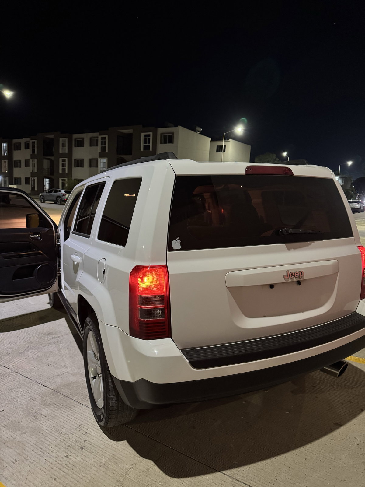 Vendo Jeep Patriot 2014 con solo 96,000 km. El vehículo está en estado 'como nuevo', con clima helado y transmisión automática. Incluye baja para emplacar. Tiene un único detalle visible en la parte trasera. Ideal para quien busca un SUV confiable y cómodo.
