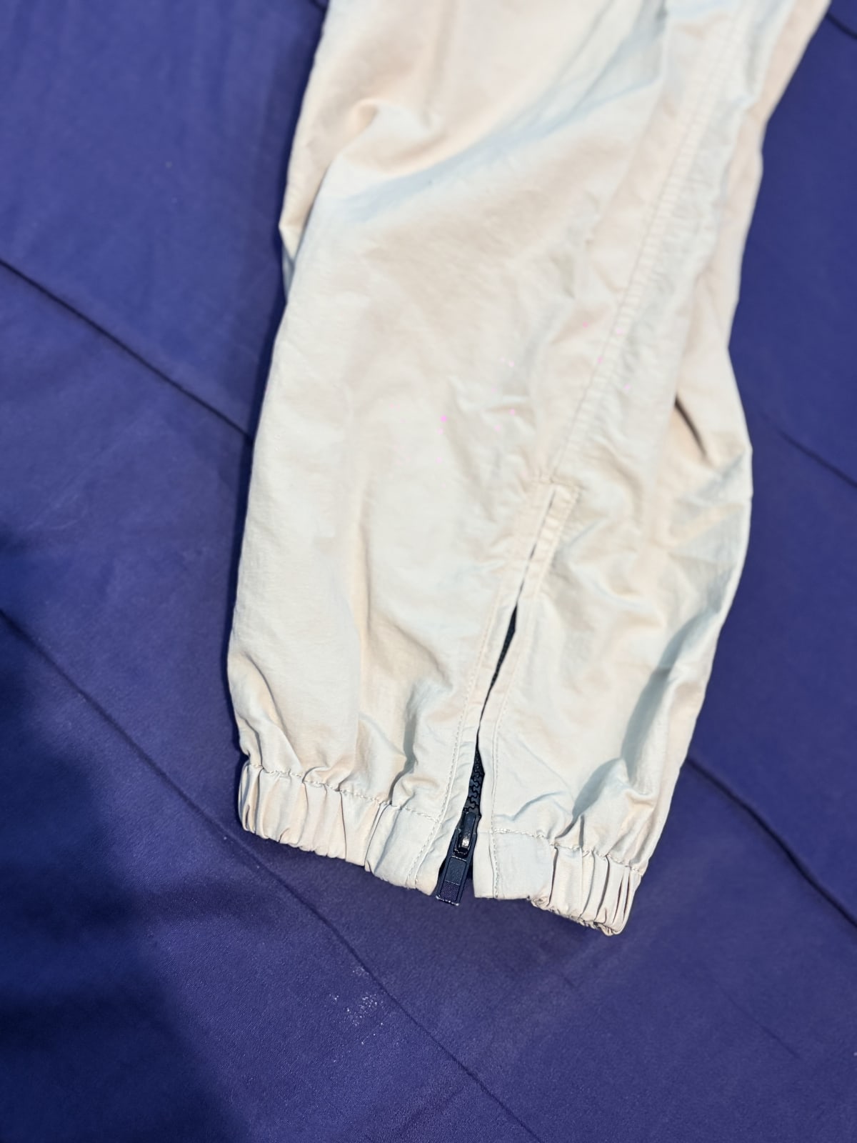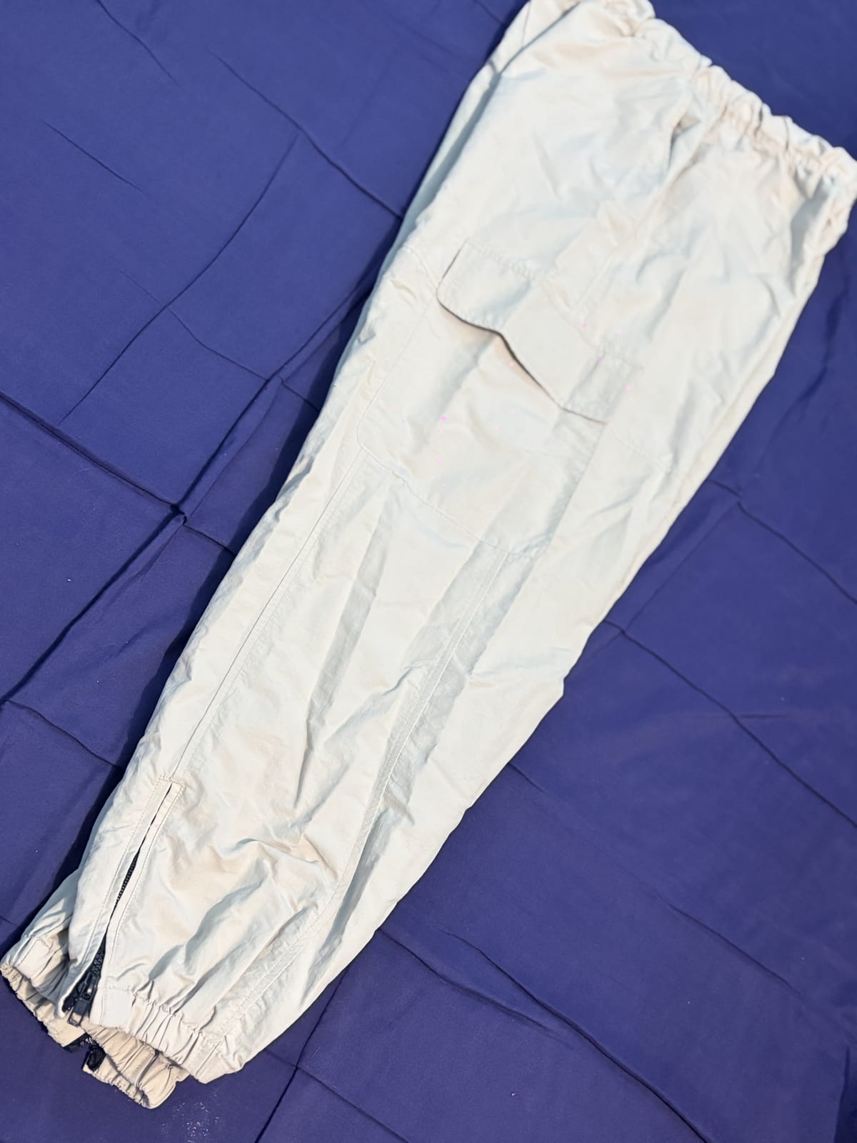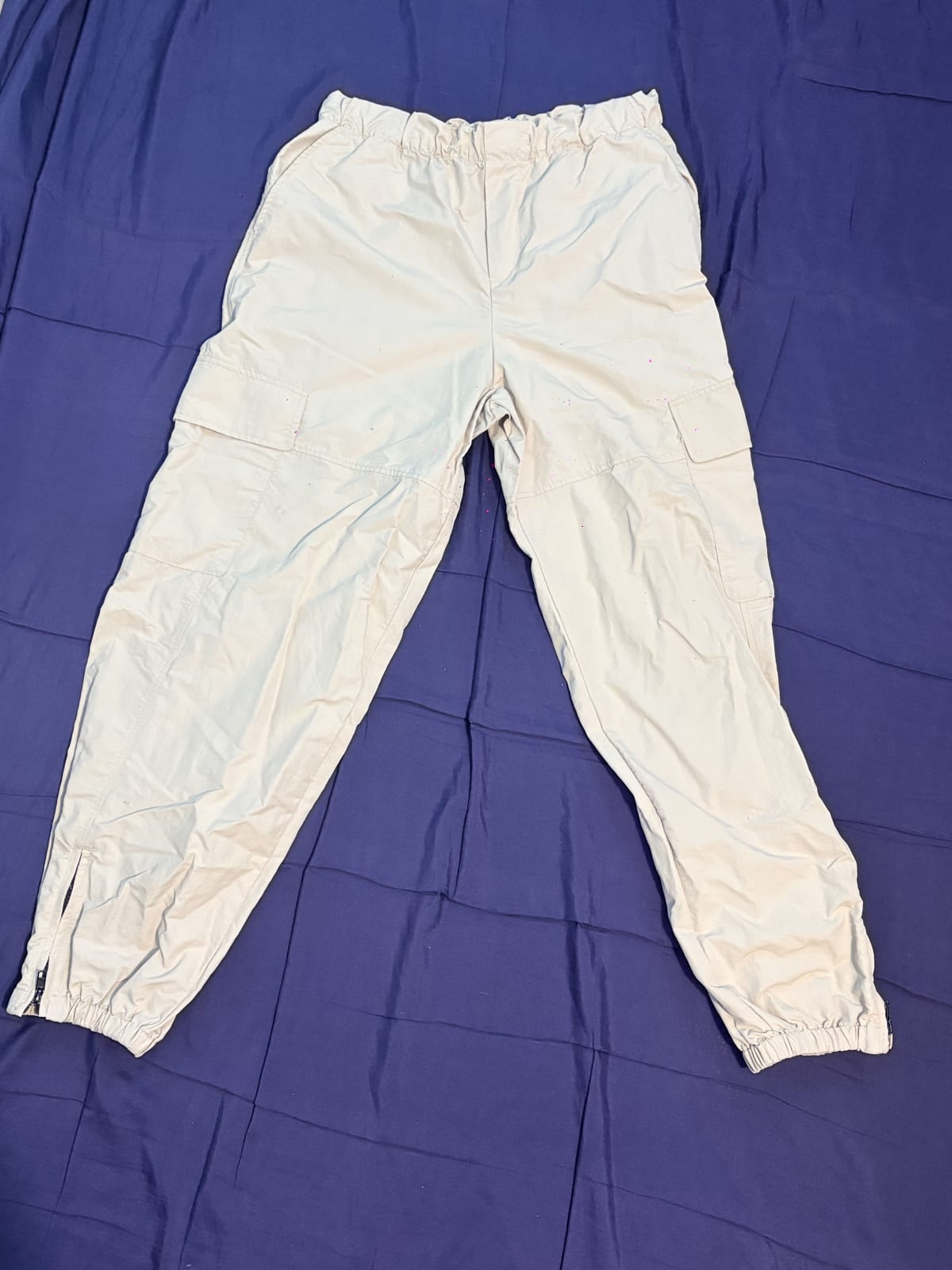 Jogger Zara beige talla S, una talla 5 de pantalón tipo Naylon, es un poco amplio de las piernas, se encuentra en excelente estado, sus cierres suben y bajan