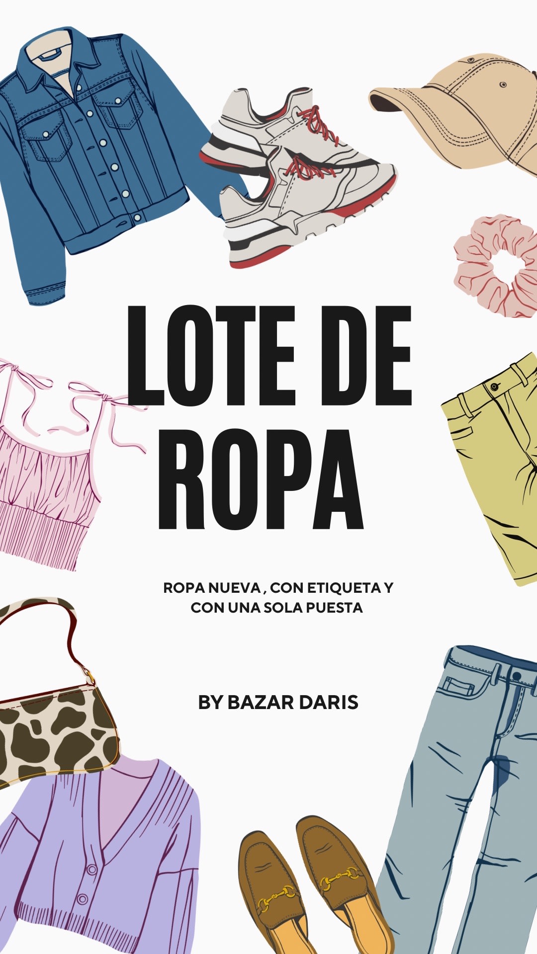Este lote incluye una variedad de prendas nuevas, todas con etiqueta y solo usadas una vez.