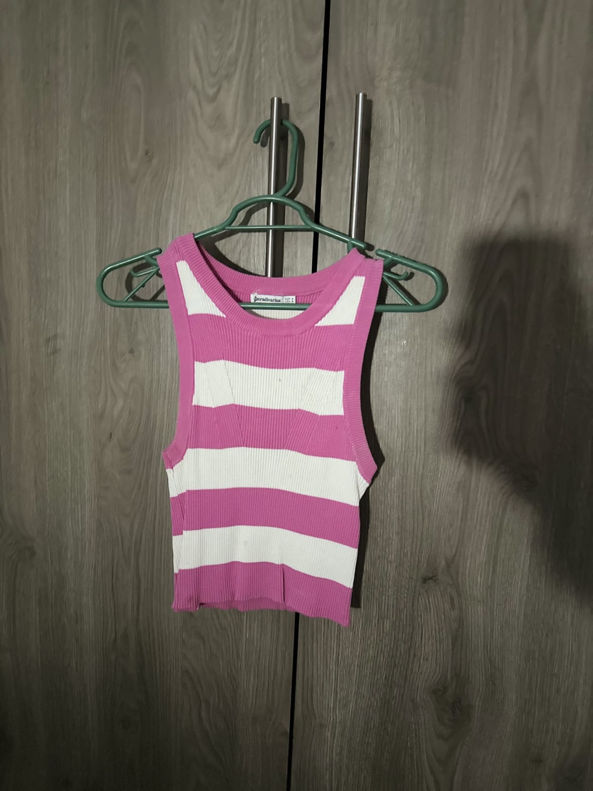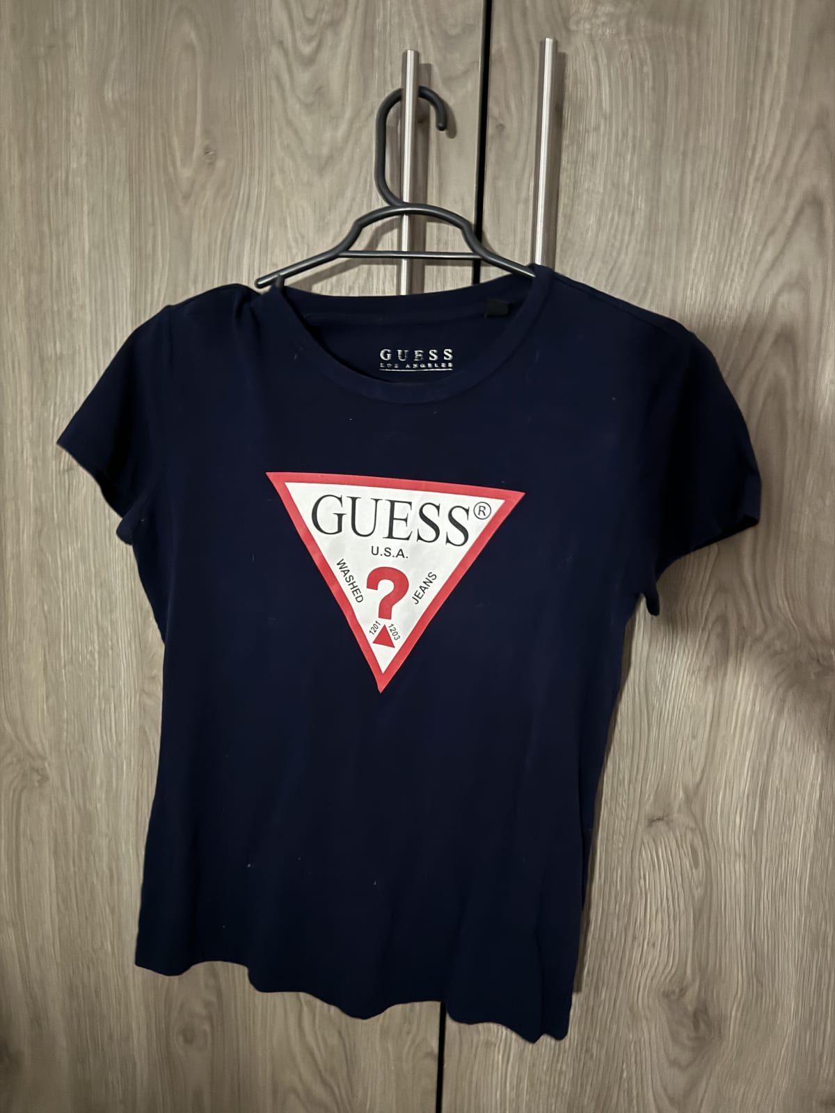 Incluye tres prendas: una blusa sin mangas de rayas en rosa y blanco, una camiseta de Guess en color azul marino con logo, y un body de manga larga en color lila. Todas las prendas están en buen estado, aunque la blusa de rayas tiene algunas marcas visibles. Ideal para complementar tu guardarropa con estilos casuales y cómodos.