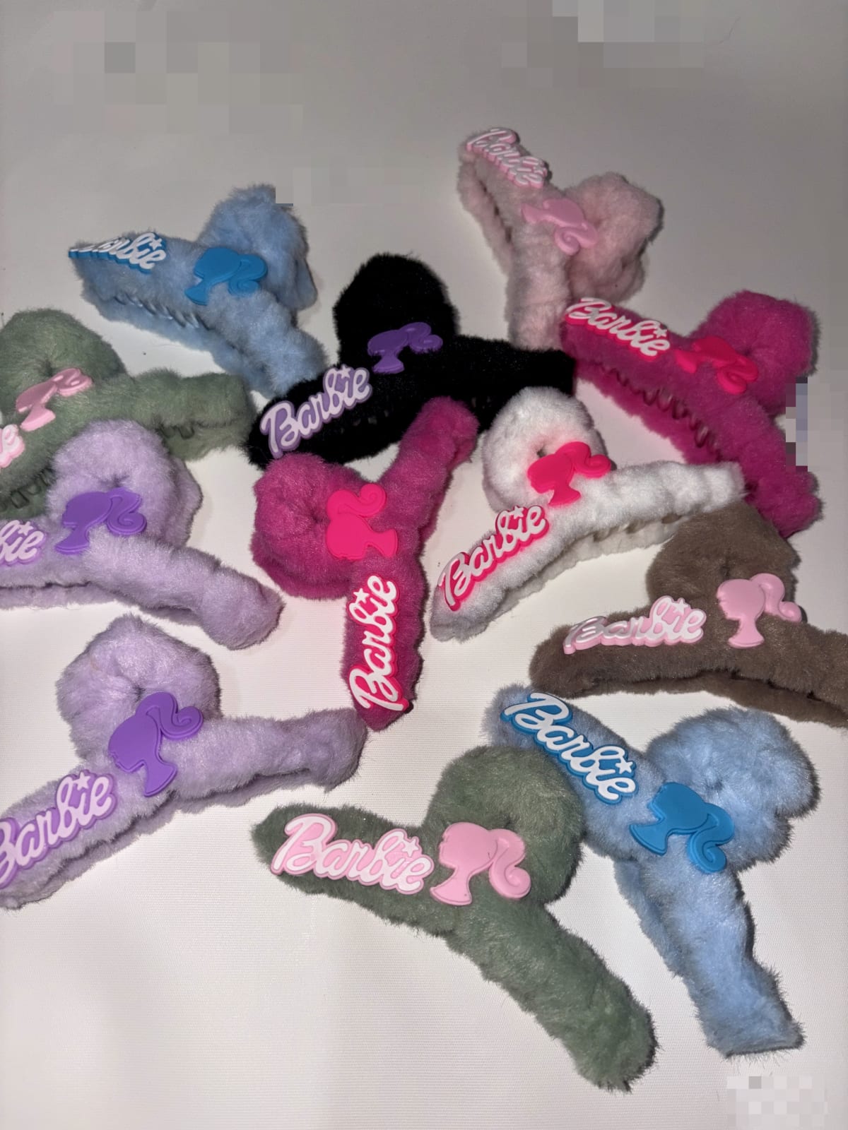 Pinzas para el cabello con diseños de Barbie en diferentes colores. Las pinzas están en buen estado y son perfectas para darle un toque divertido a tu peinado. Son ligeras y fáciles de usar, ideales para cualquier ocasión. No se observan defectos visibles.