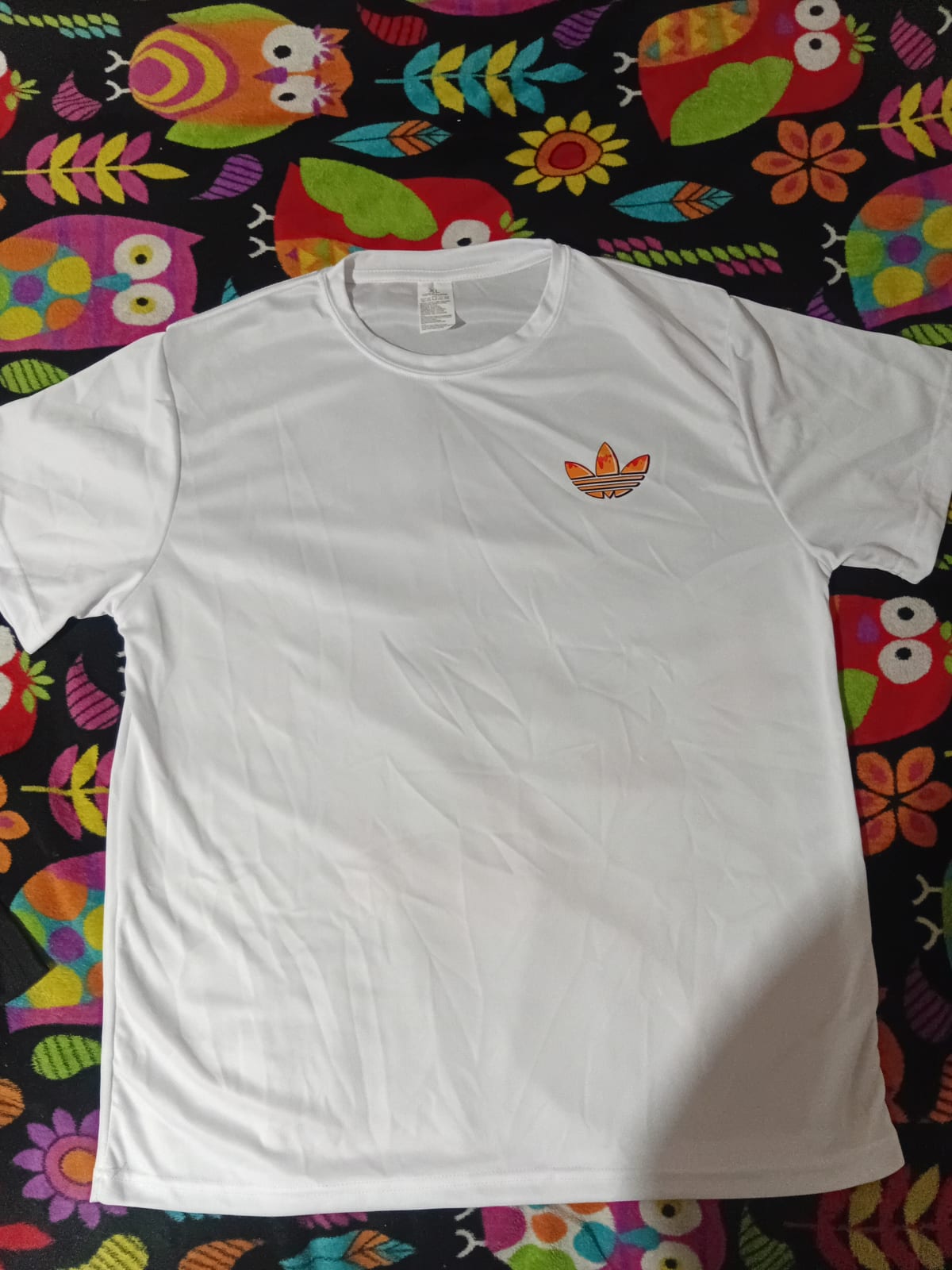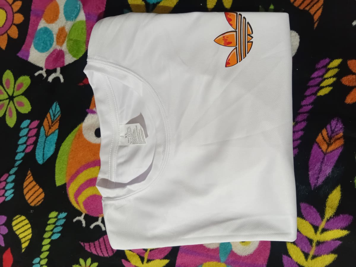 Playera de la marca Adidas en color blanco, con un logo colorido en el pecho. Se encuentra en buen estado, sin manchas visibles ni desgastes. Ideal para uso diario o actividades deportivas. Talla XL.