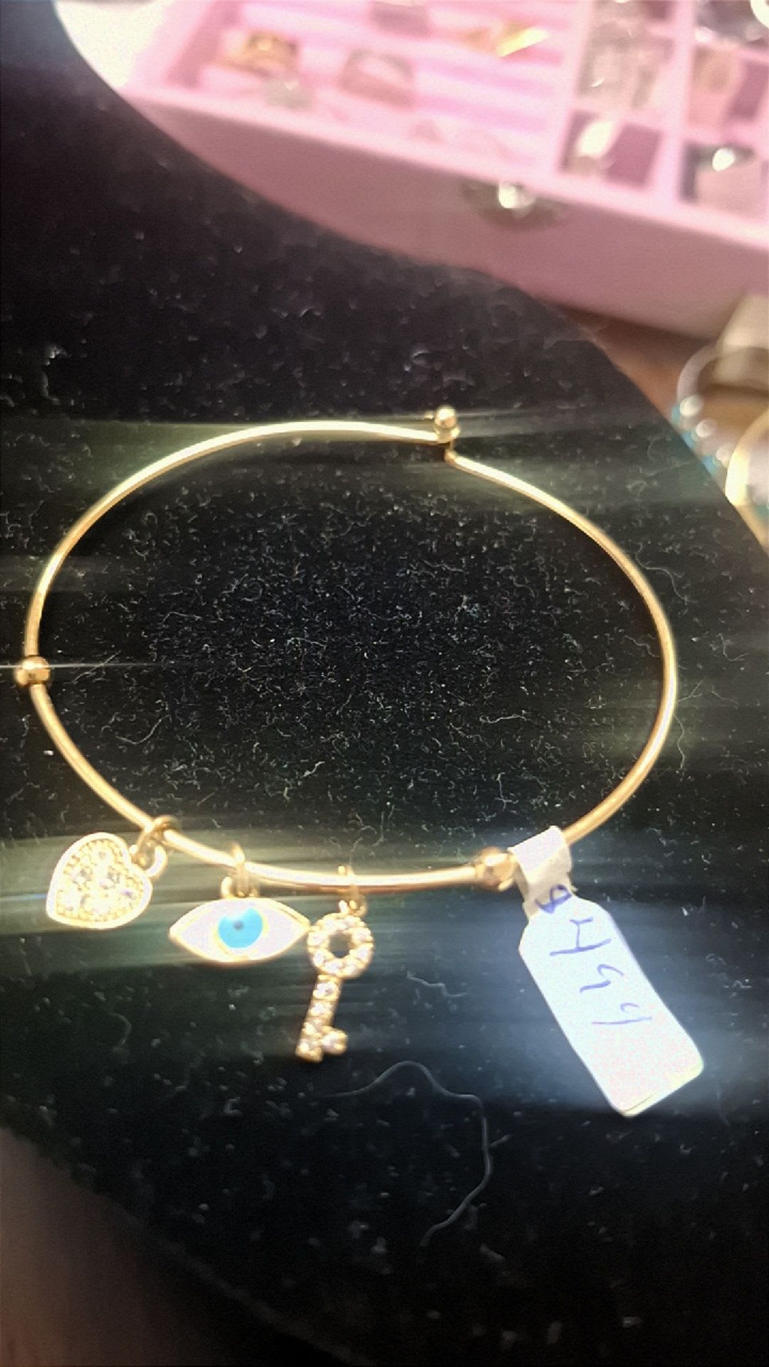 Conjunto de pulseras con diferentes charms. Incluye una pulsera dorada con tres corazones y otra con un ojo y una llave. Las pulseras están nuevas, son uso. Ideal para complementar cualquier outfit. Perfectas para regalar o para uso personal.