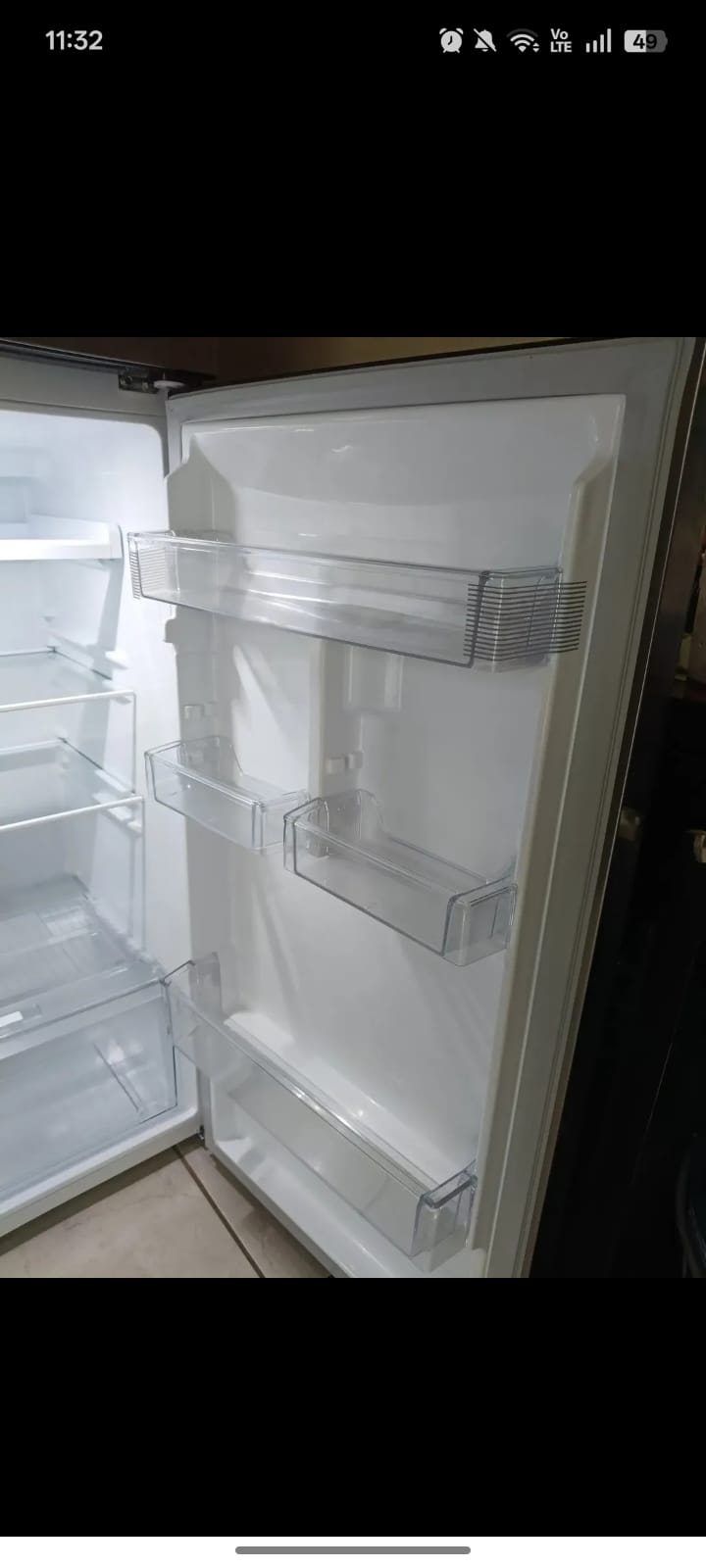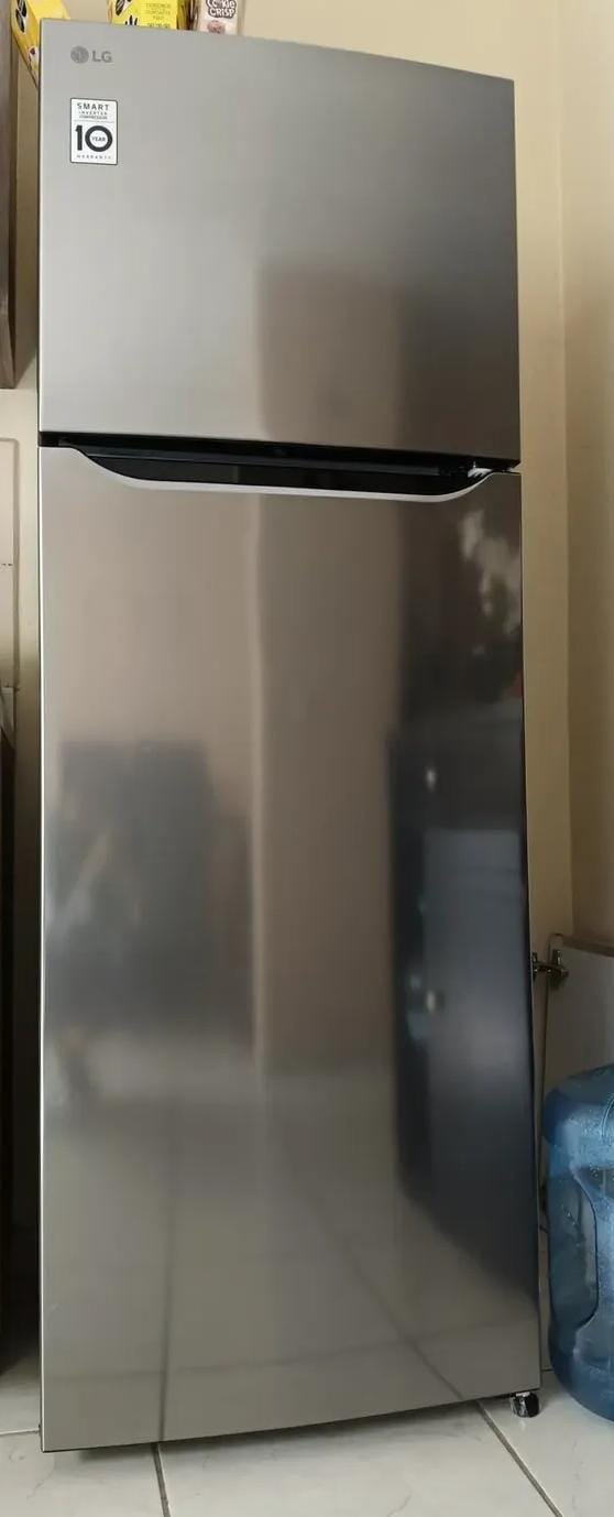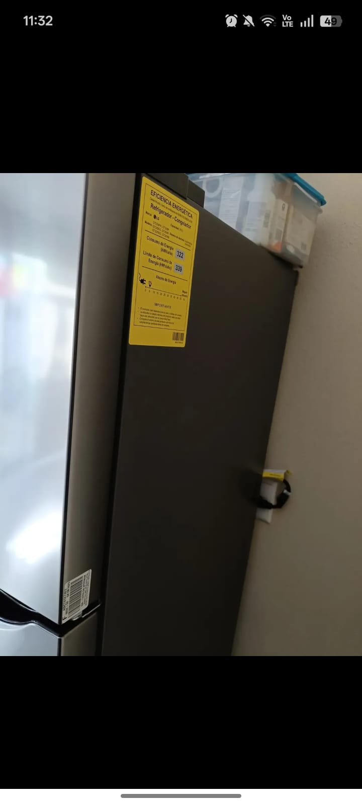 Refrigerador LG de 2 puertas, en buen estado general. Cuenta con estantes y compartimentos en la puerta, ideal para organizar tus alimentos. Tiene un consumo energético de 322 kWh. Puede presentar algunas marcas de uso, pero funciona perfectamente. Refrigerador LG 11 pies