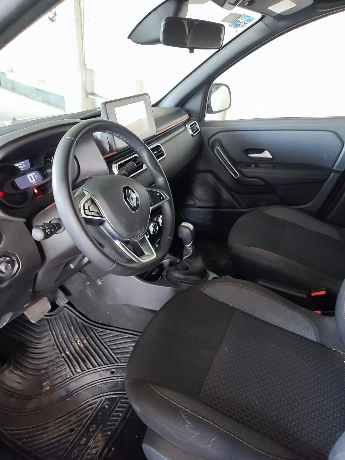 Se vende Renault Oroch 2022 con 7,766 km recorridos. El interior está en buen estado, con asientos limpios y sin rasgaduras. Incluye cámara de reversa y pantalla multimedia. Presenta algunos signos de uso, como polvo en el tablero y alfombras. Ideal para quienes buscan un vehículo funcional y versátil.