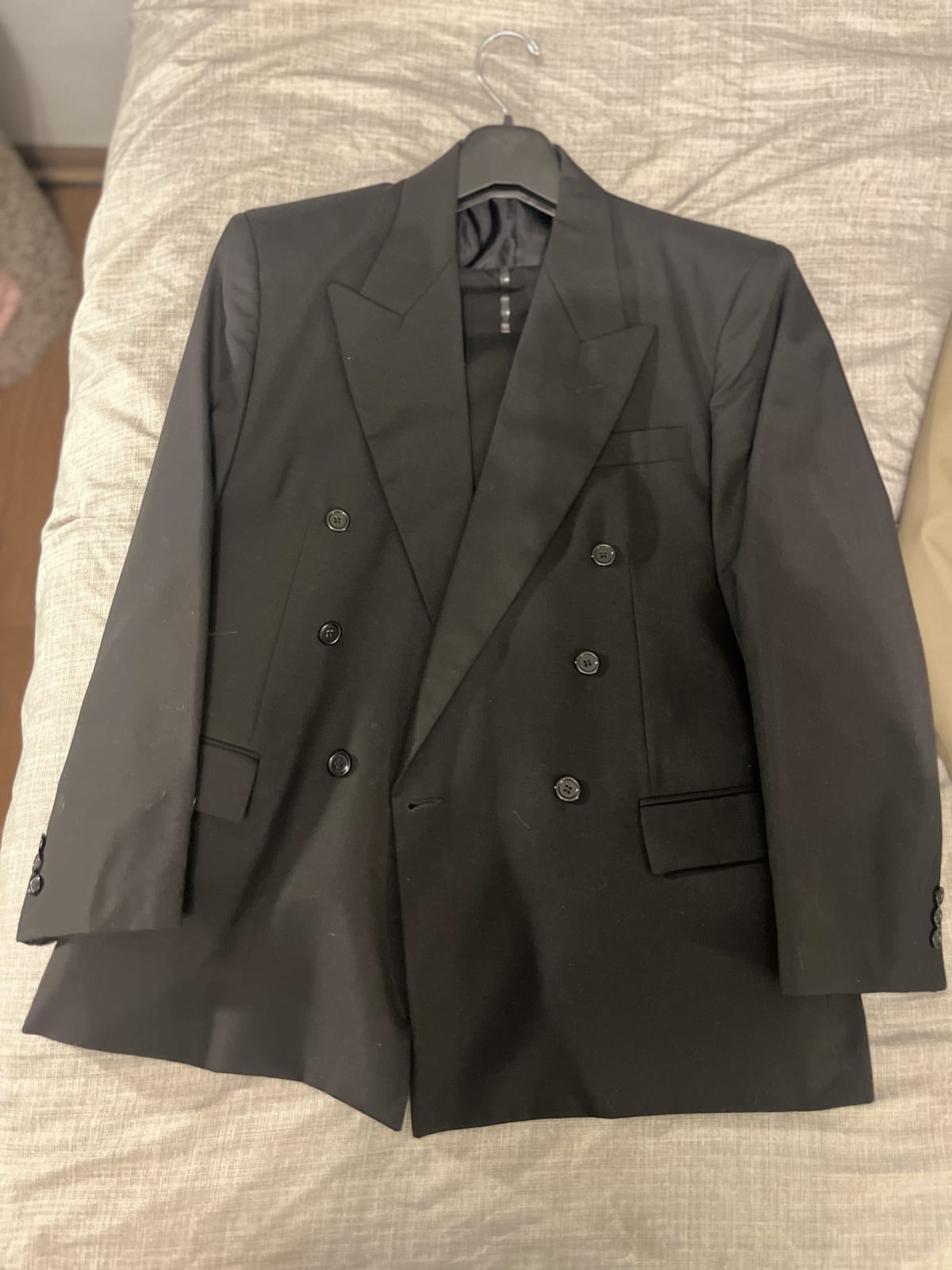 Saco negro de la marca Marco Viali, con diseño de doble botón. En perfecto estado. Incluye pantalón a juego. Ideal para ocasiones formales o eventos especiales.