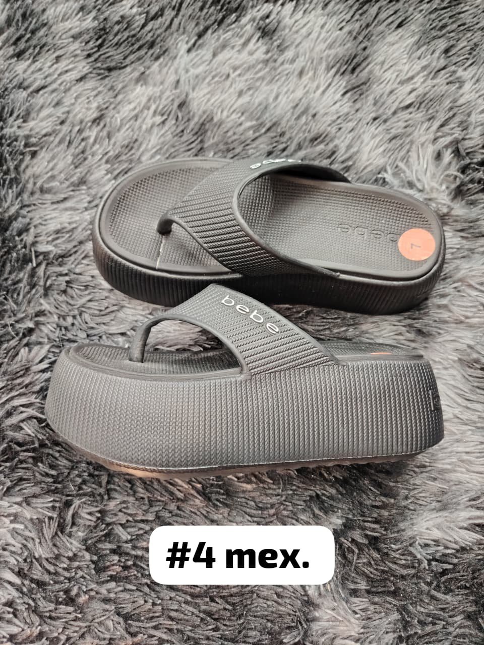 Sandalias con plataforma de 7 cm, talla #4 Mex. Están en buen estado, con un pequeño detalle en la parte derecha que no afecta su uso. Son cómodas y perfectas para el verano. Ideal para quienes buscan un estilo casual y fresco.