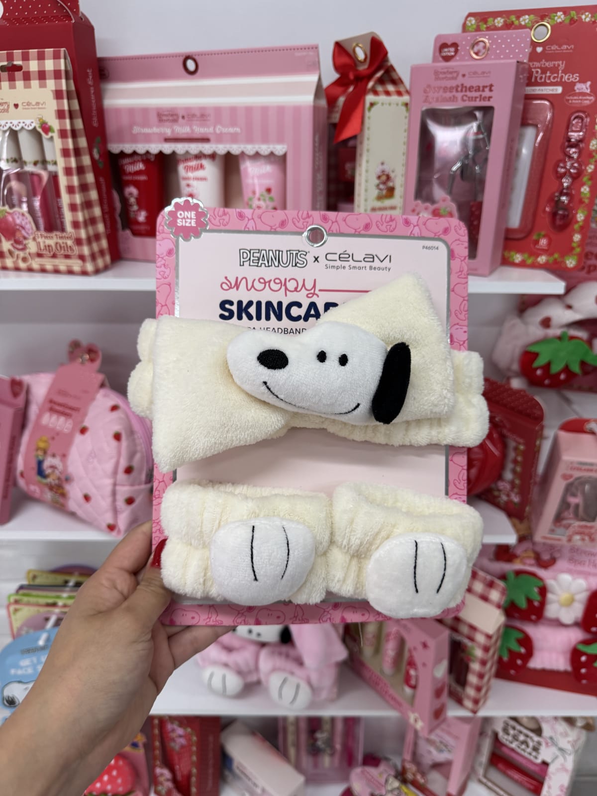 Este adorable set de cuidado facial de Snoopy incluye una diadema y una muñequera en color rosa y crema. Ambos accesorios son suaves y cómodos, ideales para tu rutina de belleza. El set está en buen estado, sin defectos visibles. Perfecto para los amantes de Snoopy y la estética kawaii.