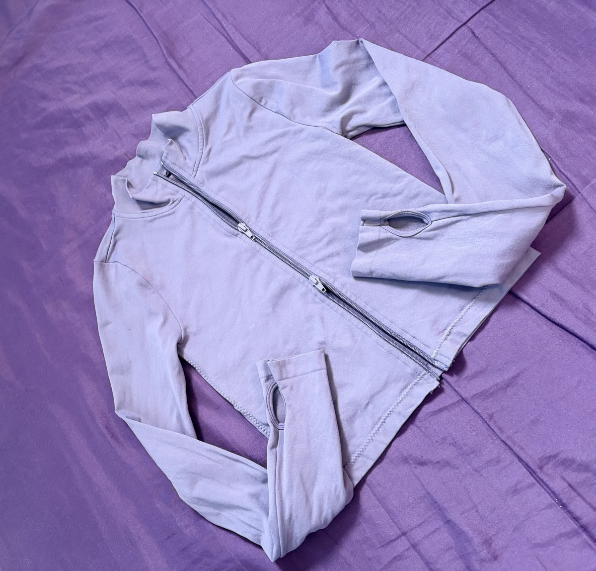 Sudera deportiva es color azul, última foto de color con la luz del sol, talla S Sin detalles y en excelente estado