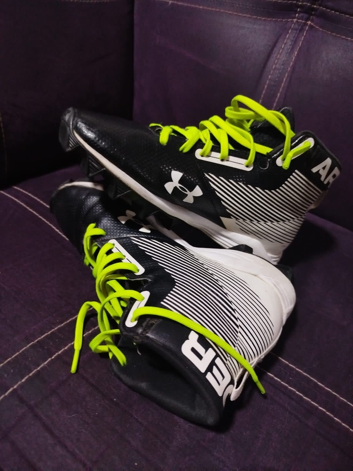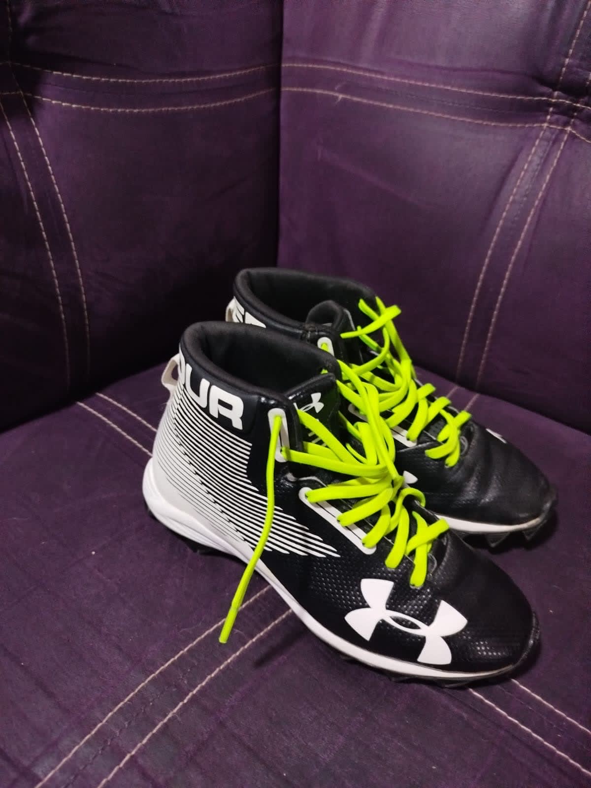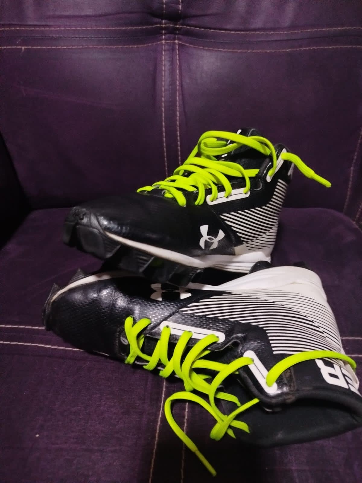 Tenis Under Armour en buen estado, ideales para deportes. Tienen un diseño atractivo en negro con detalles en verde fosforescente.Incluyen cordones originales y son cómodos para el uso diario o actividades deportivas. Solo tuvieron una puesta