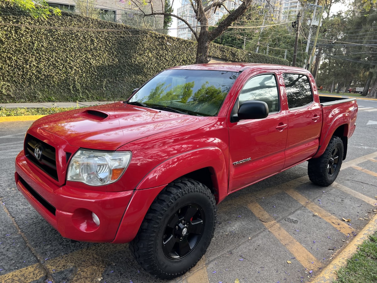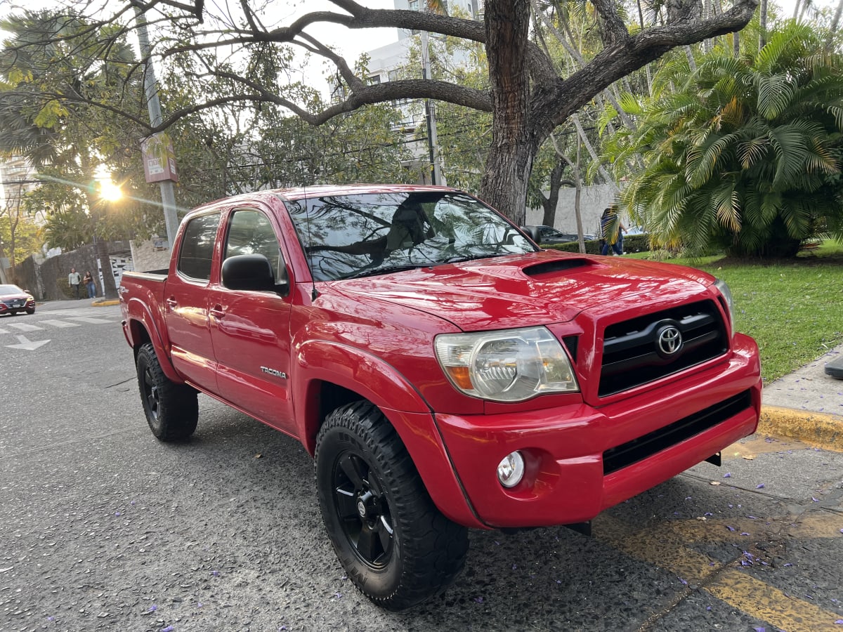 Vendo Toyota Tacoma 2006 en color rojo, versión TRD Sport. La camioneta se encuentra en buen estado general, con llantas nuevas y un motor en óptimas condiciones. Tiene algunos detalles menores de uso, pero nada que afecte su rendimiento. Ideal para quienes buscan un vehículo robusto y confiable para uso diario o aventura.