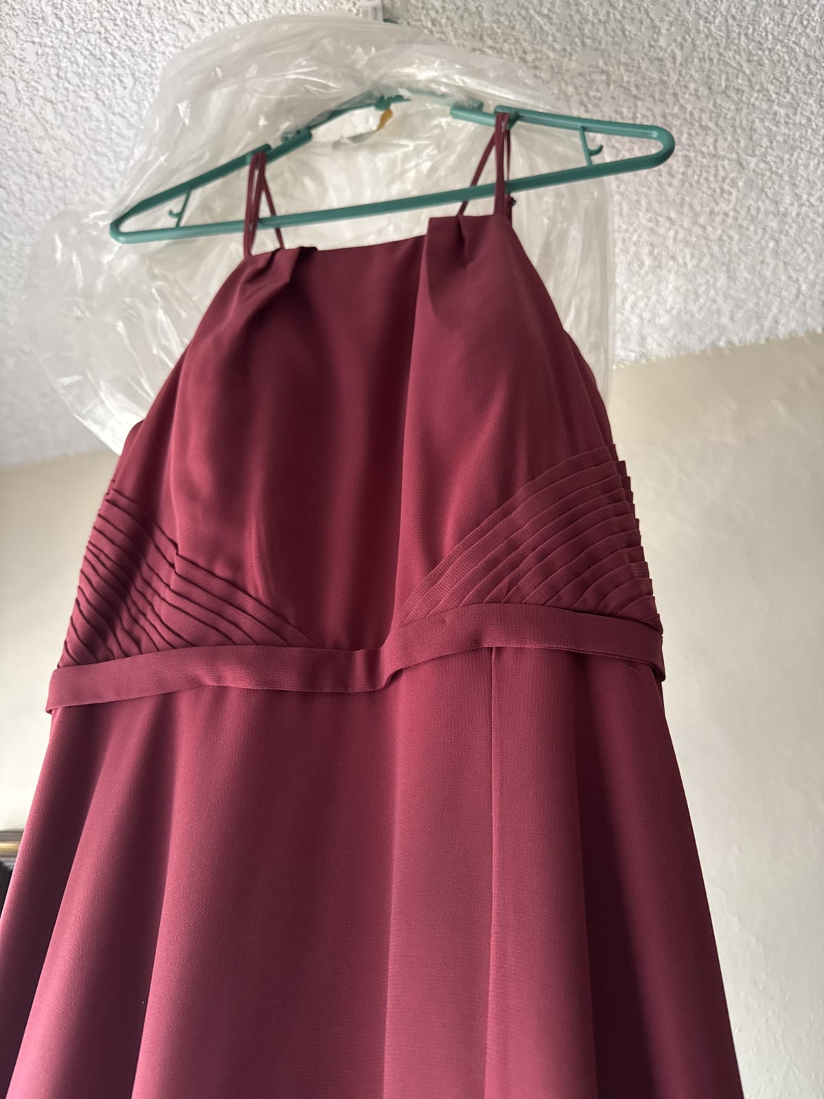 Vestido largo color tinto, tiene solo una puesta talla S con cierre en la espalda