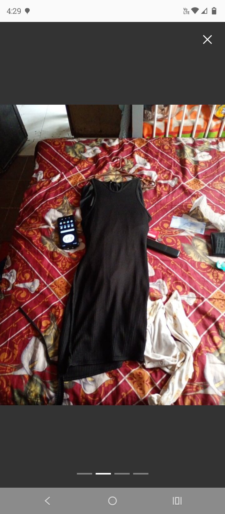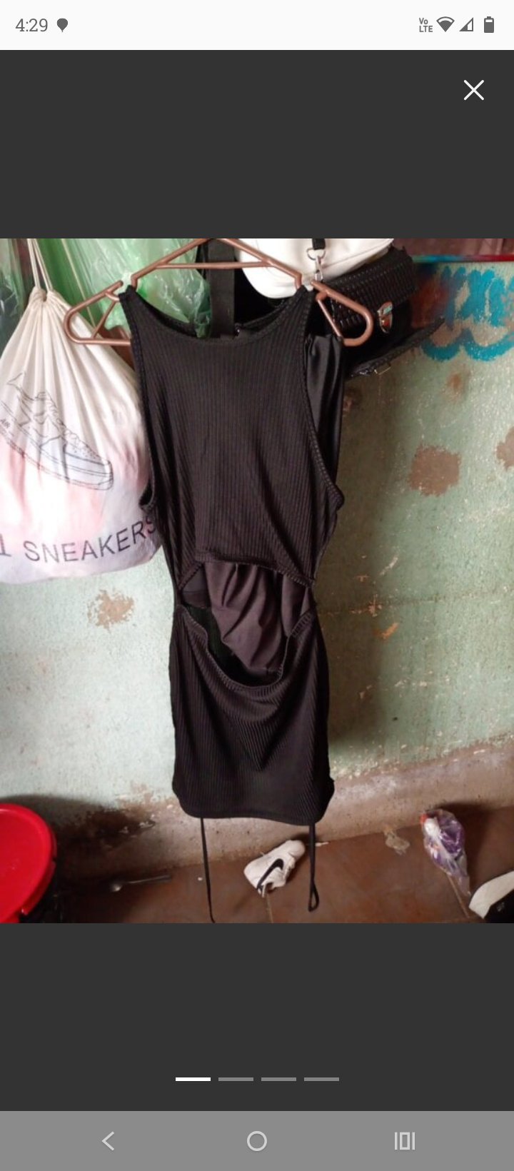 Vestido negro en buen estado, ideal para ocasiones casuales o de noche. Tiene un diseño ajustado con tirantes y detalles de costura. Se incluye un accesorio adicional (una blusa blanca) que aparece en las fotos. Sin defectos visibles, listo para usar.