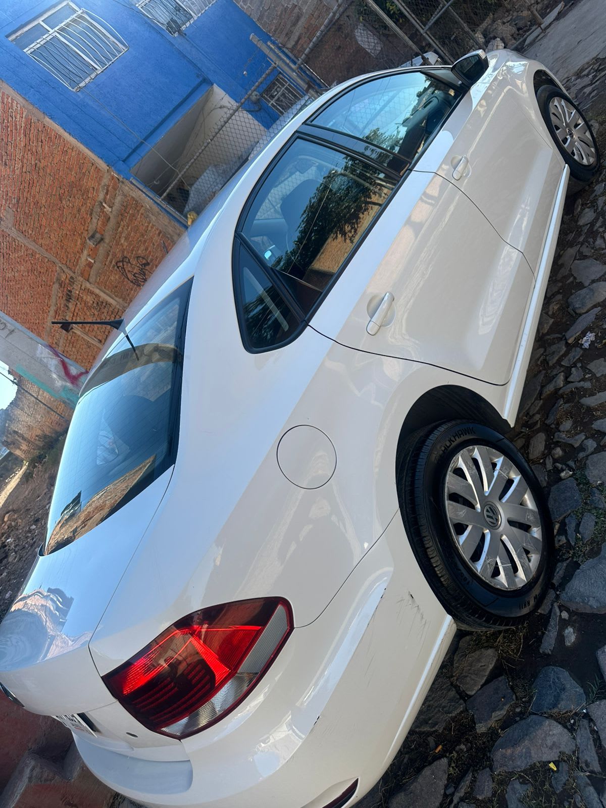 Se vende Volkswagen Vento 2017 en color blanco. El vehículo está en buen estado general, con algunos rasguños visibles en la parte delantera y trasera. Tiene un motor en buen funcionamiento y cuenta con llantas nuevas. Ideal para uso diario y en buenas condiciones para la ciudad