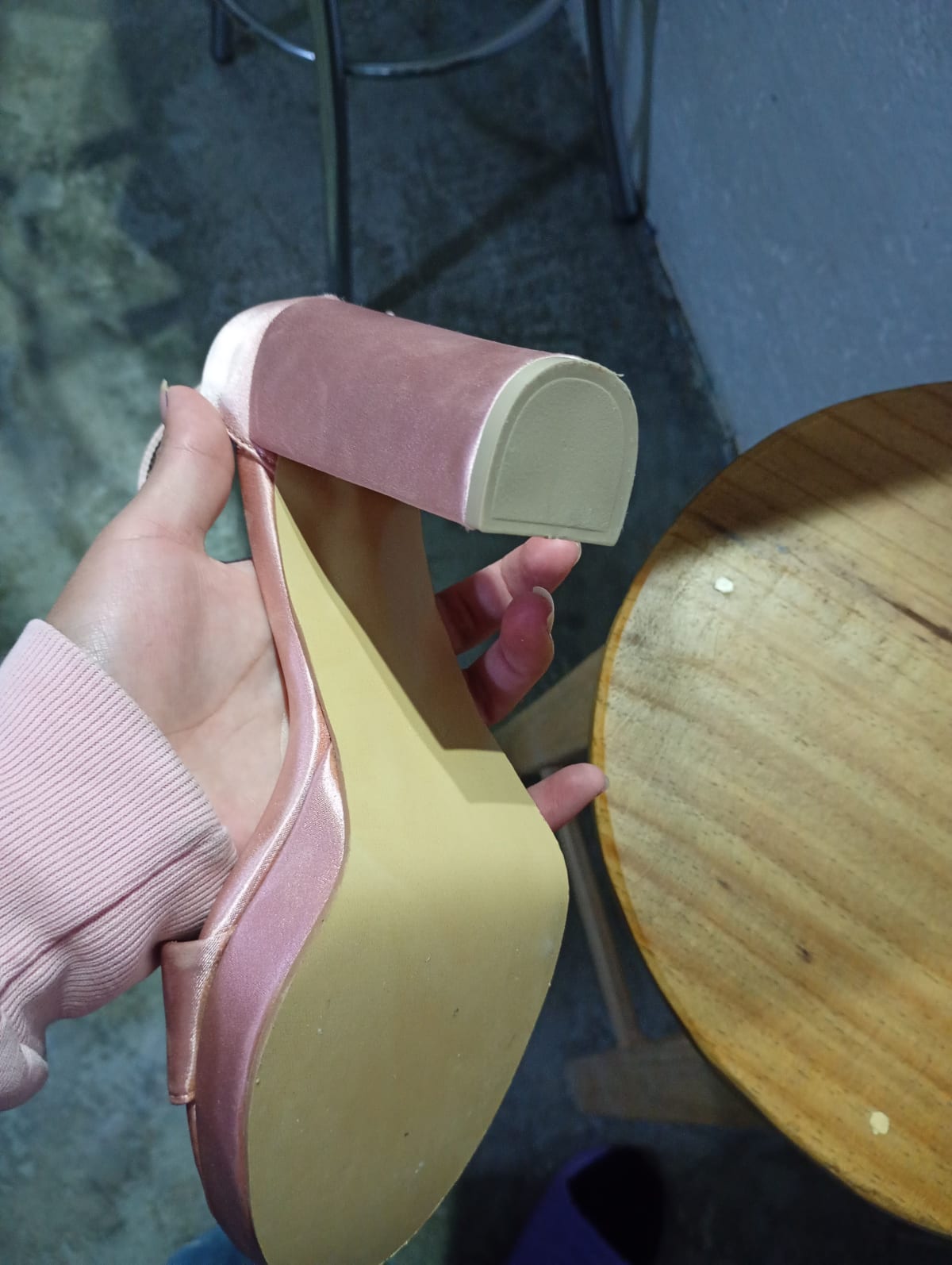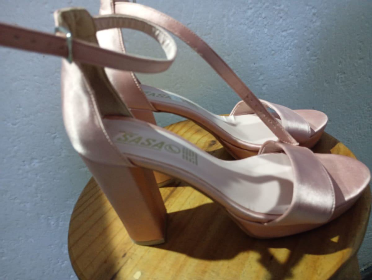 Estos elegantes zapatos de tacón de la marca SASA son perfectos para ocasiones especiales. Están en buen estado, con un diseño atractivo en tono rosa y tacón de bloque. La suela muestra un leve desgaste, pero no afecta su uso. Ideal para complementar tu outfit de fiesta.Numero 4